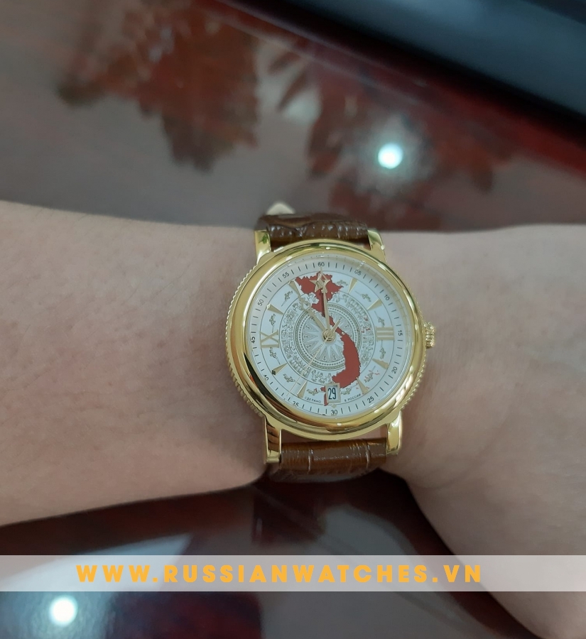 Đồng hồ Poljot Nga-Việt biểu tượng Trống đồng Đông Sơn trên nền bản đồ Việt Nam cùng biển đảo Tổ quốc, đây là sản phẩm xuất sắc nhất của Nhà máy Nga cho đến hiện nay!