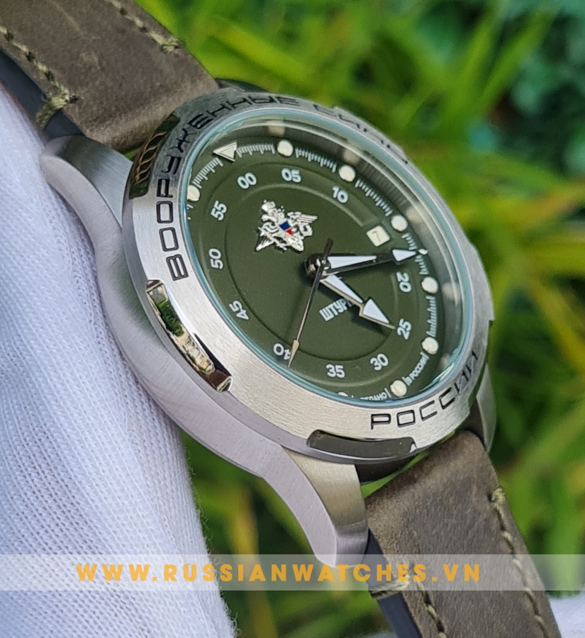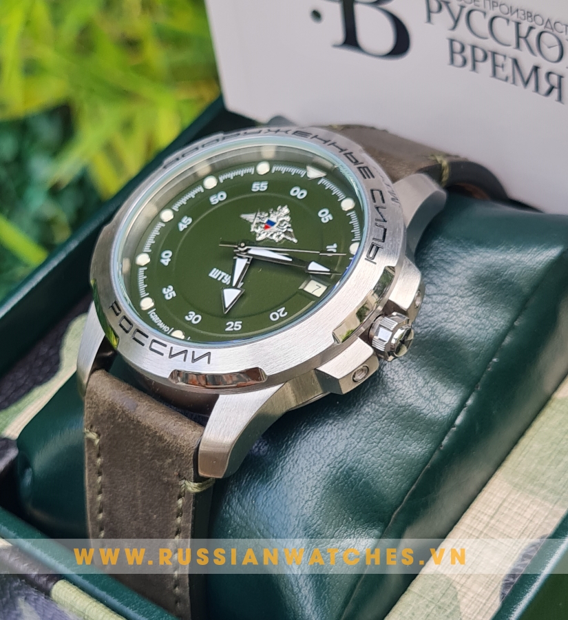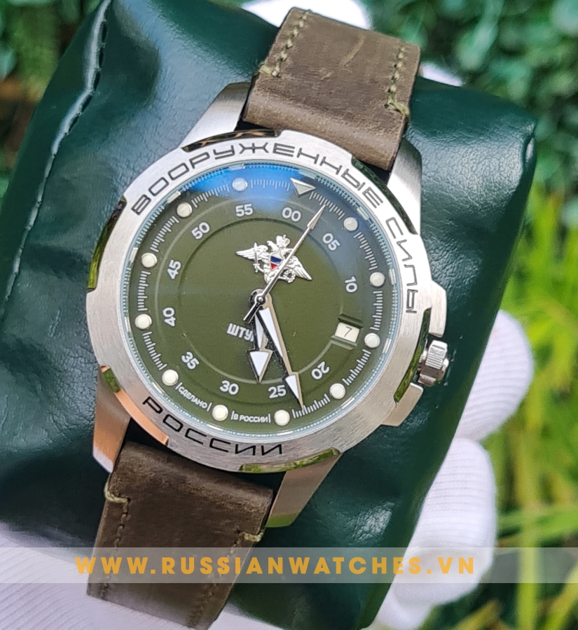 - Kích thước mặt 42mm, dày 14 mm, logo đại bàng 2 đầu của Lục Quân Nga, kính khoáng;