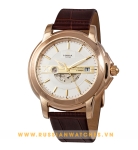 - Kích thước mặt: 44.2mm, dày 12mm, vỏ vàng đúc nguyên khối, 25,18 gam vàng 14k, kính khoáng phủ Sapphire.