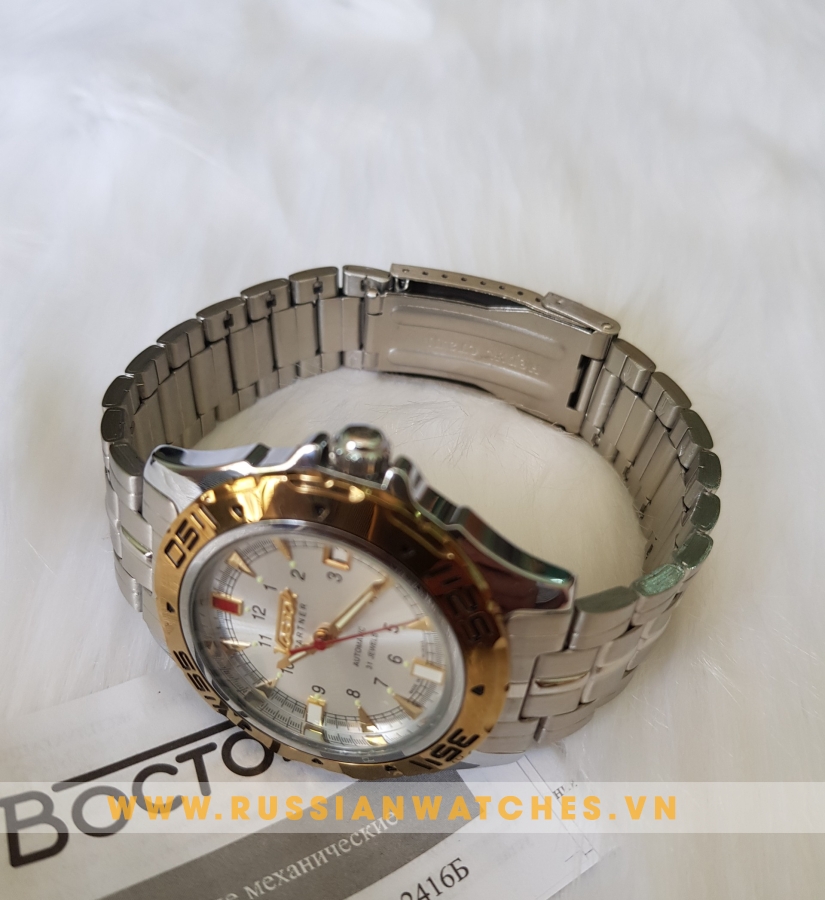 Máy cơ tự động 2416 do Vostok sản xuất từ Chistopol, 31 chân kính chống sốc, dự trữ năng lượng 31 giờ.